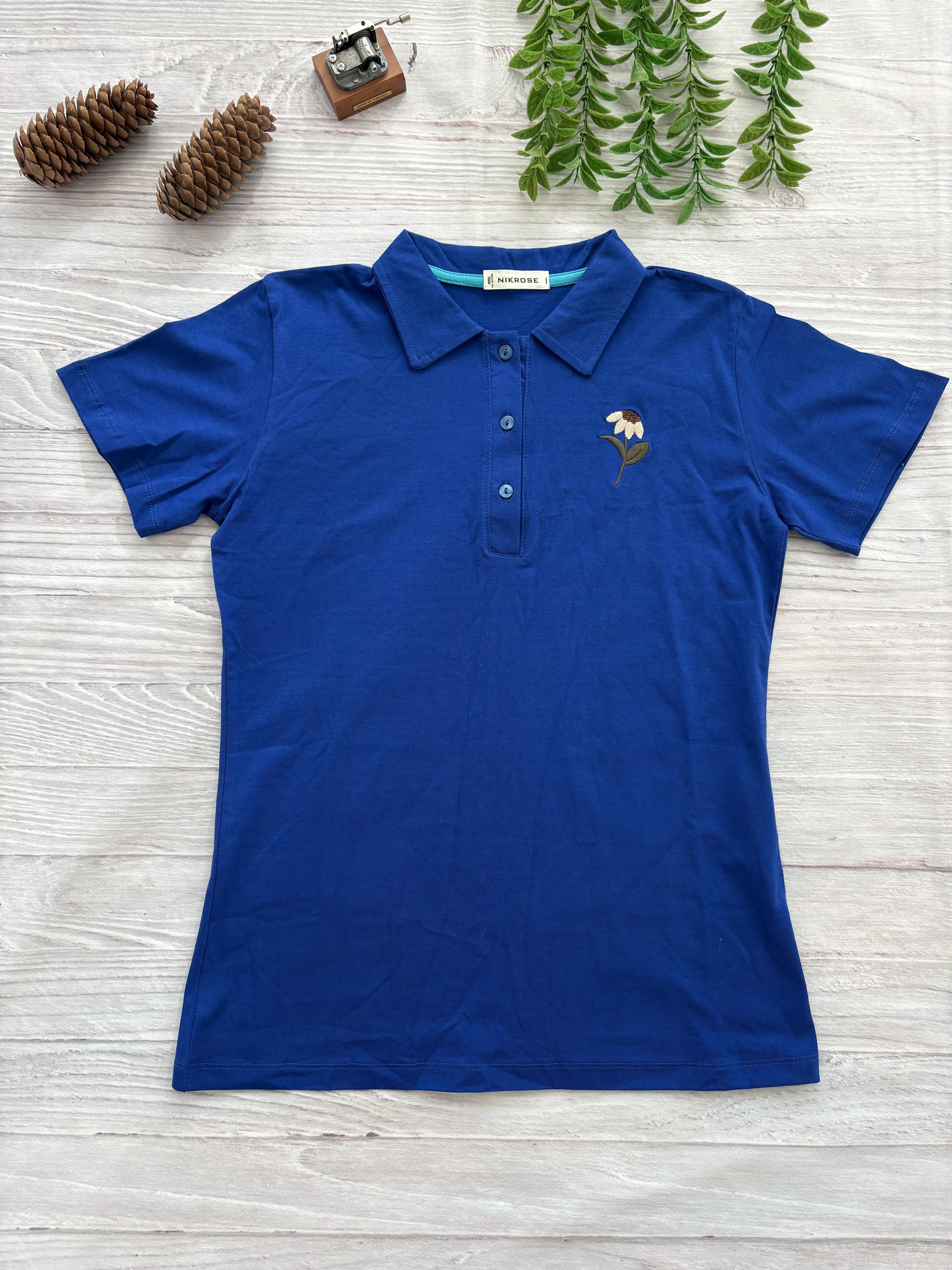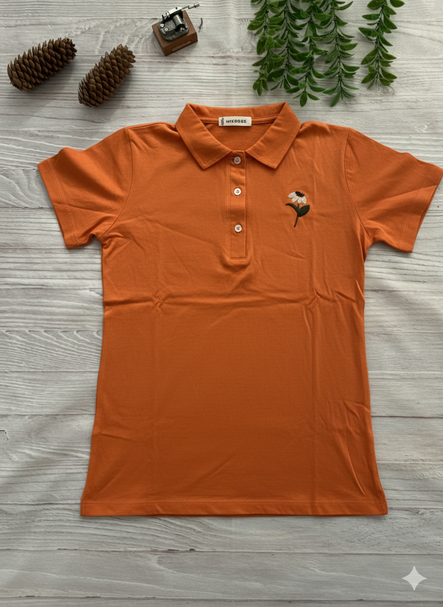 تیشرت زنانه یقه دار سه دکمه گلدوزی | نخی راحت و شیک روزمره