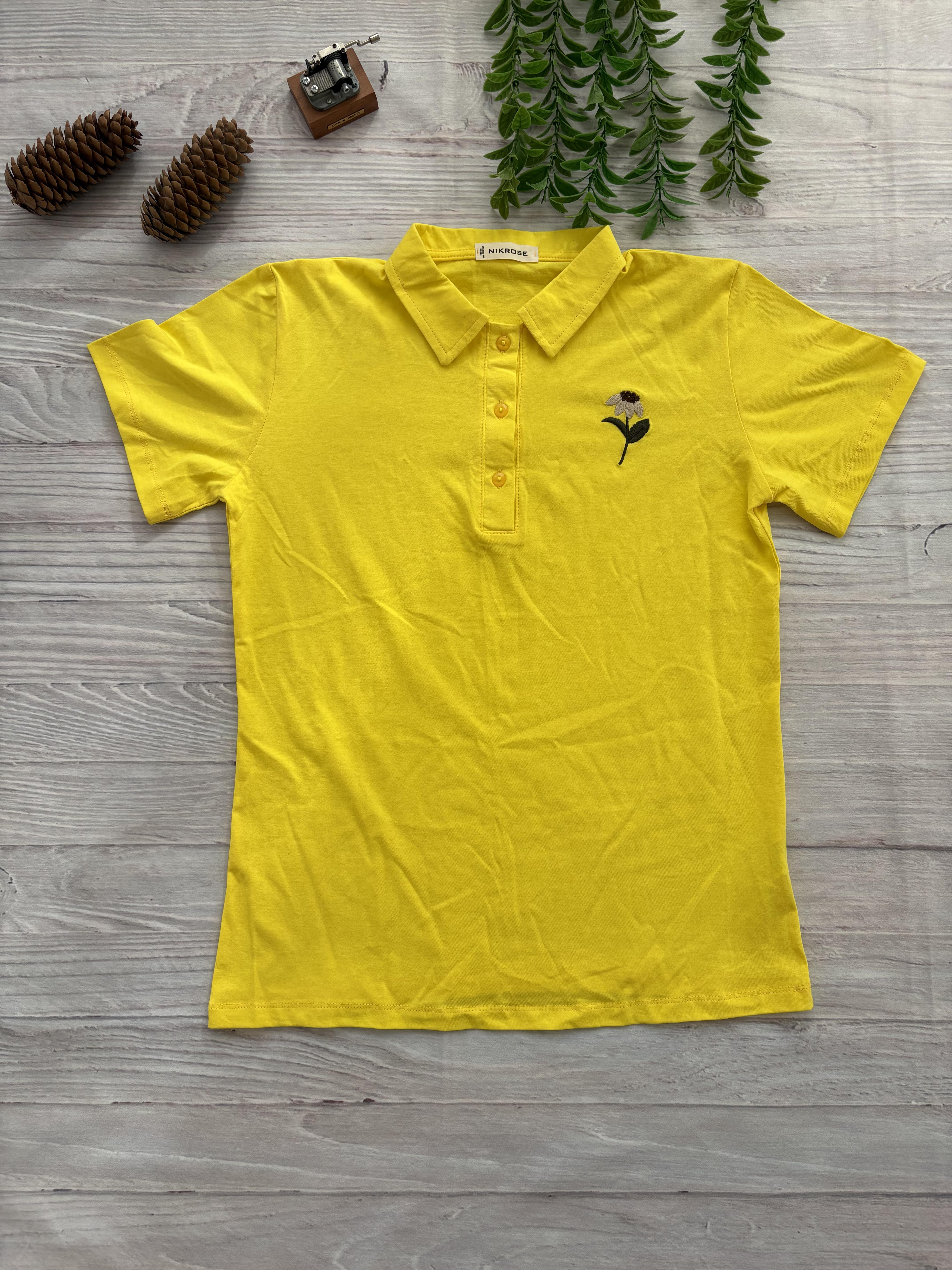 تیشرت زنانه یقه دار سه دکمه گلدوزی