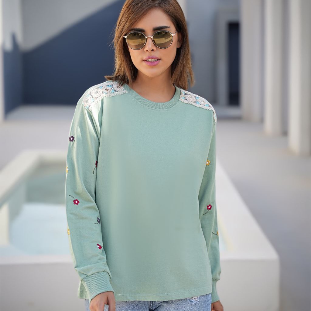 دورس دو نخ زنانه فری سایز (36 تا 44) با سرشانه گیپور و گلدوزی روی آستین