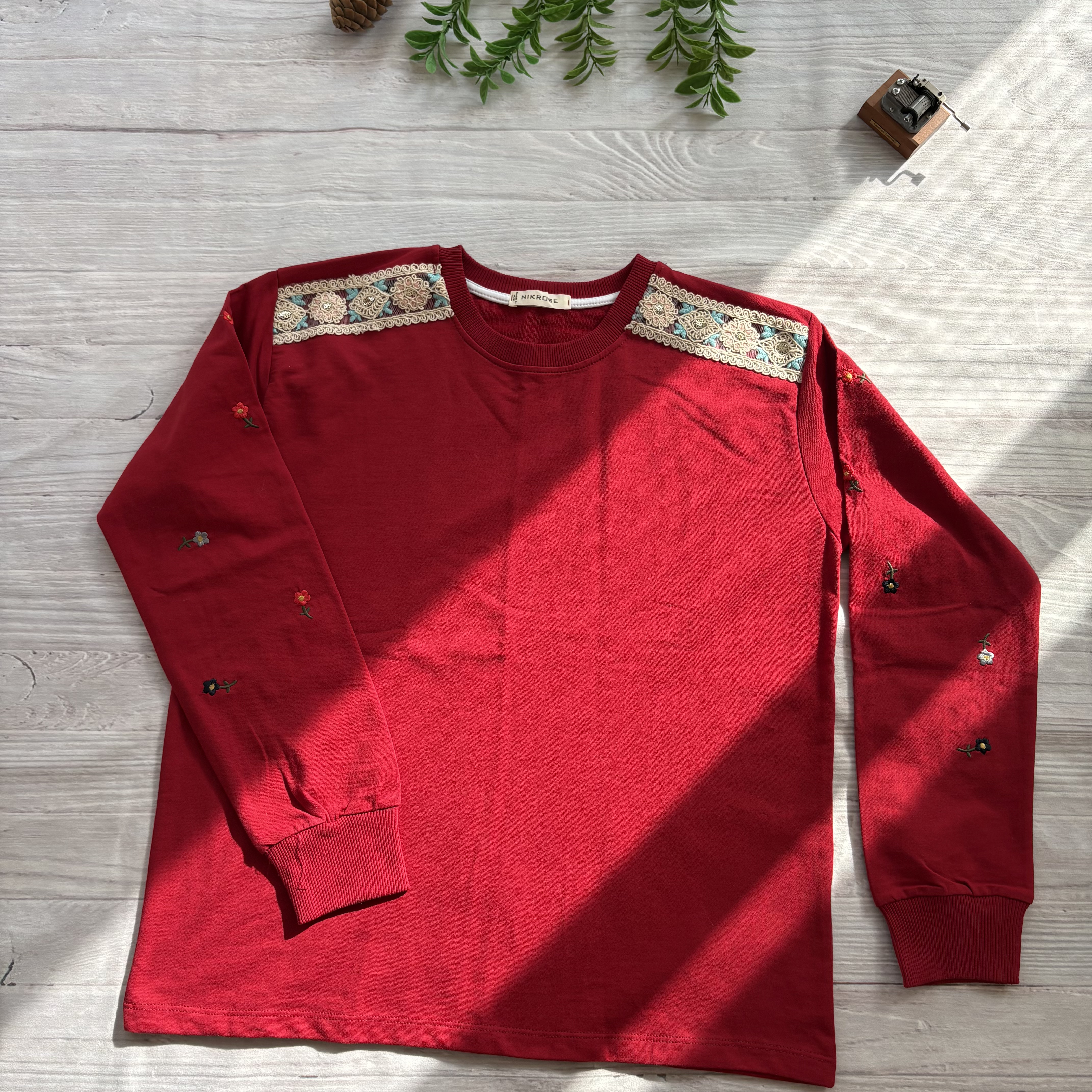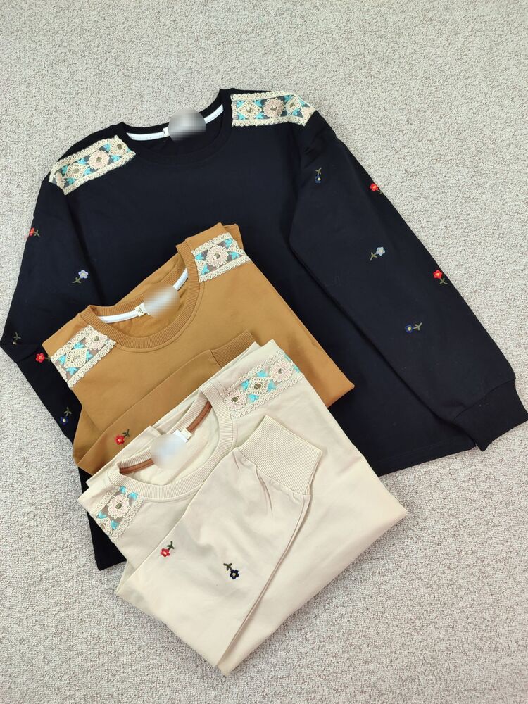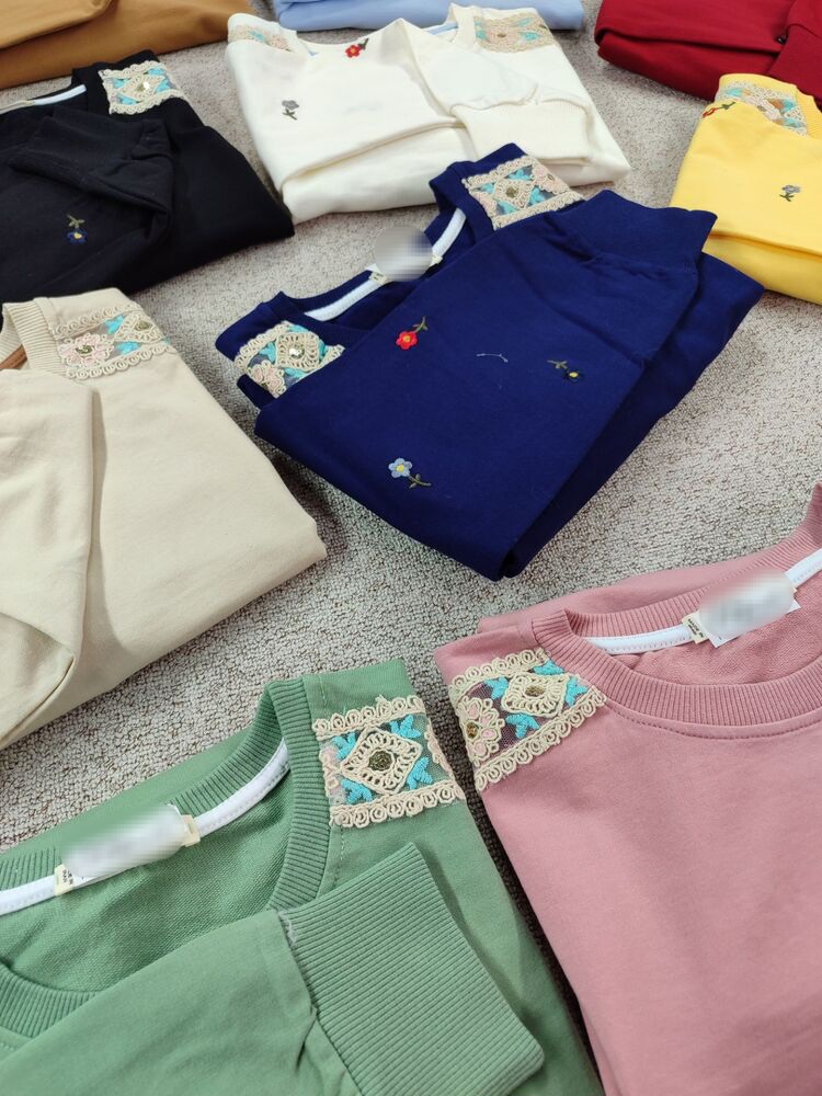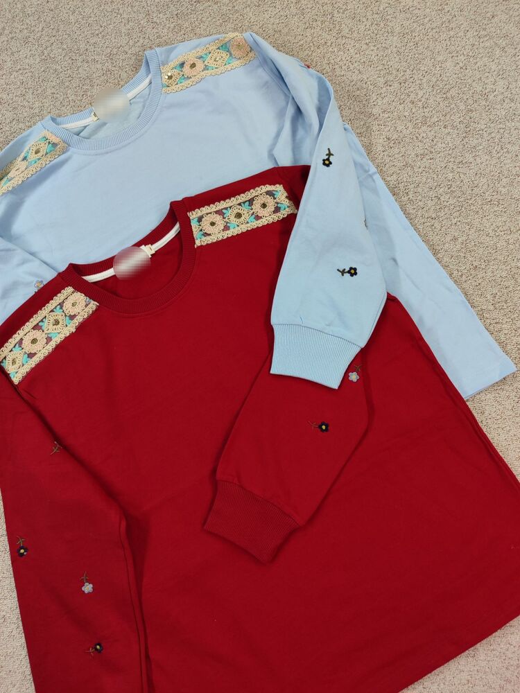 دورس زنانه آستین بلند گلدوزی با سرشانه گیپور جنس نخ و پنبه فری سایز 36 تا 44
