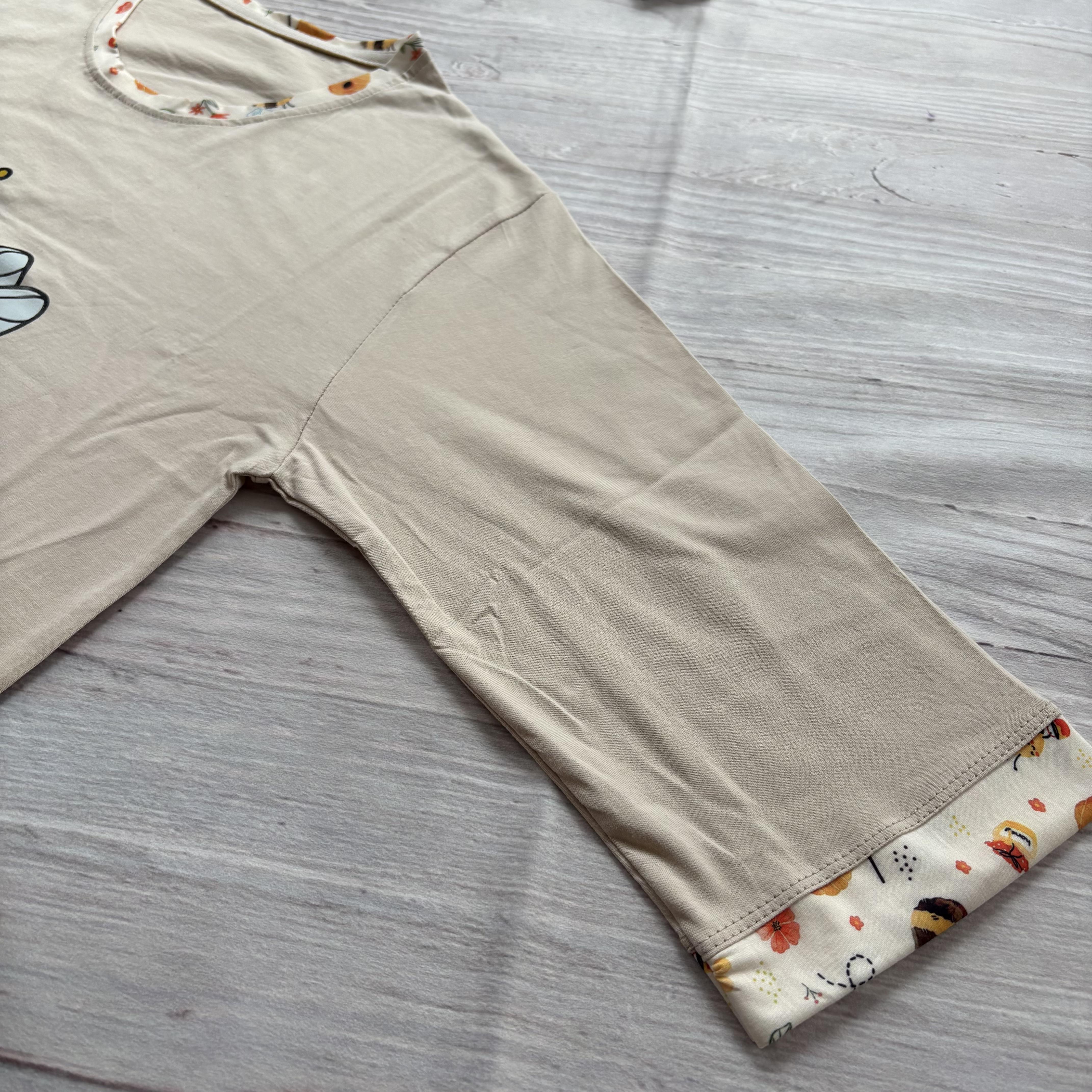 این ست به صورت فری سایز (مناسب سایز 38 تا 46) طراحی شده و به دلیل برش استاندارد، روی اندامهای مختلف خوشفرم میایستد. طراحی آستین سهربع، آن را به انتخابی مناسب برای تمام فصول تبدیل کرده است.