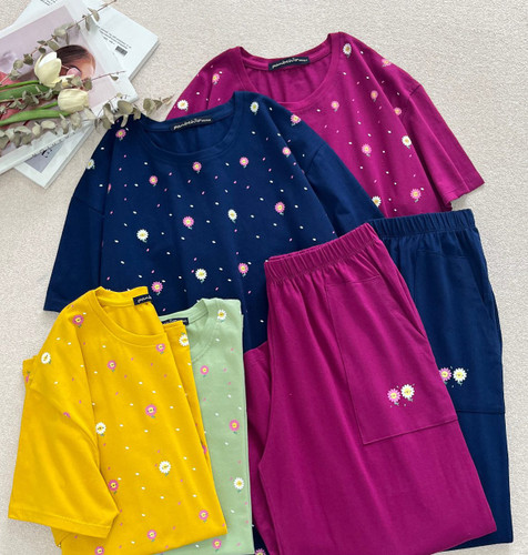 ست تیشرت شلوارک زنانه جنس نخ پنبه اعلا فری سایز 36 تا 42